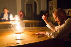 He asked the audience if we were actually there, and could we hear him? This put us all on a bit of an edge and there were some faint murmured replies. But the scene was now set as Ivan Ilyich told the story of his life and death, moving deftly around the room without need for a stage. He only stepped off the floor when he proceeded to lay himself on one of the tables as though his body had just been laid out.