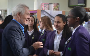 Sir Ian took time to talk to lots of students including the schools' Junior Leadership Team, RR6 Ambassadors and members of the Equality and Diversity working groups. Key stage 3 students were also treated to an assembly.
