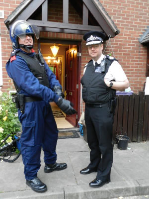 And pictured above right are Met Assistant Commissioner Simon Byrne and Inspector Jarvis at the first location raided by officers.