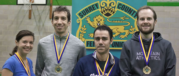 The team (pictured below) of Marco Russo (épée), Michael O’Keeffe (sabre), Monica Sisiu (women's foil) and Hilmi Sergen (men's foil) retained the cup at Epsom College beating teams from Streatham and Kingston fencing clubs.